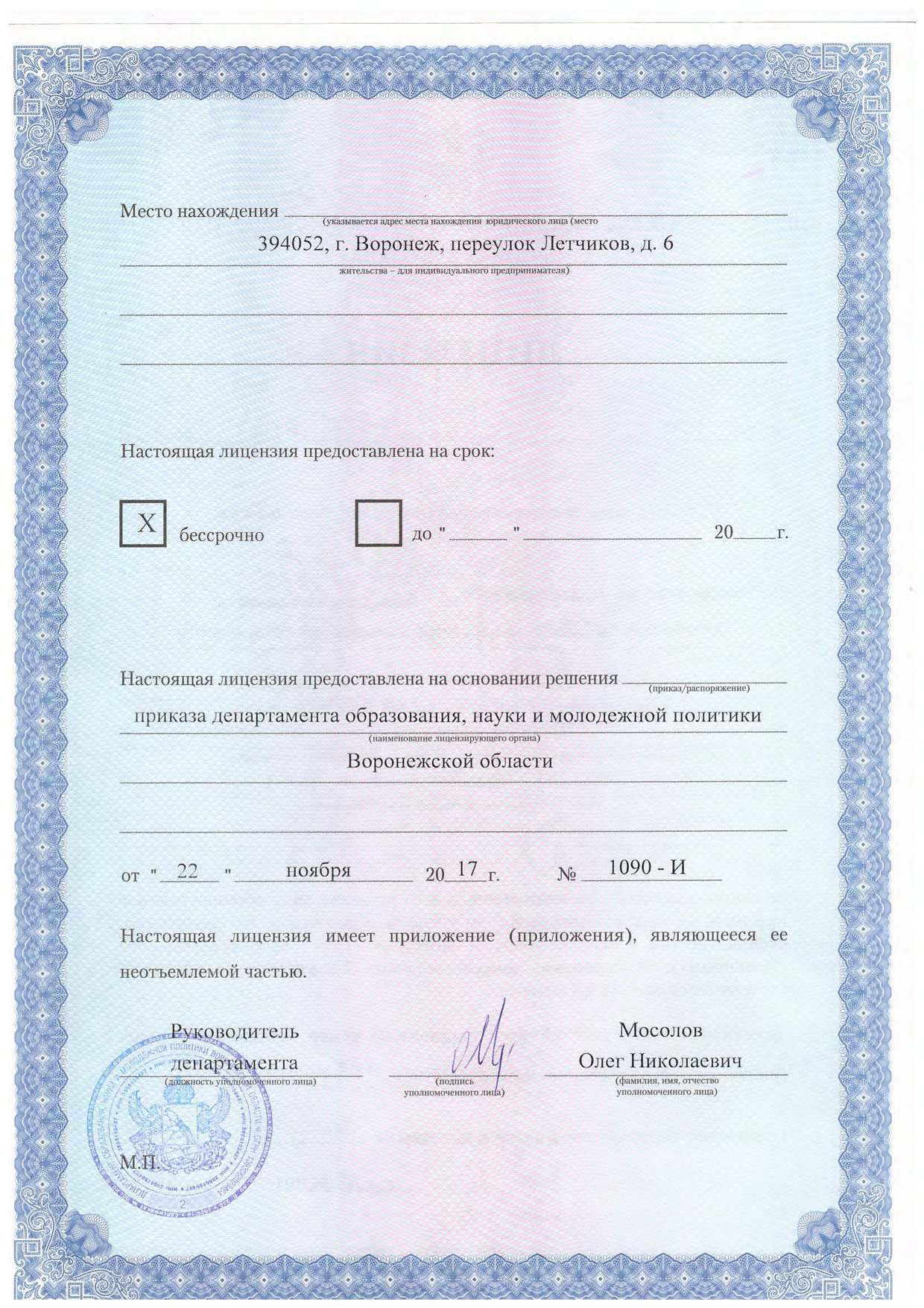 - Перейти на вкладку Лицензирование образовательной деятельности