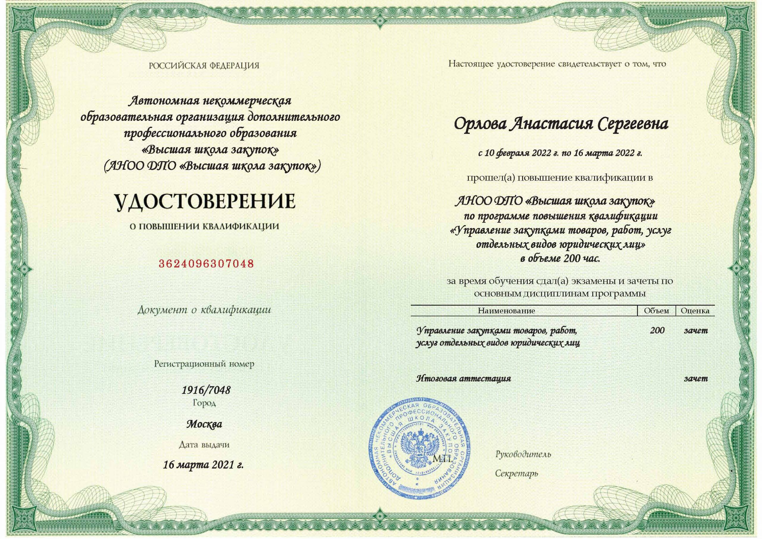 Повышение квалификации «Профессиональное управление государственными и муниципальными закупками для контрактных управляющих» в Уфимской школе закупок производится по закону 44-ФЗ с выдачей удостоверения установленного «государственного» образца.